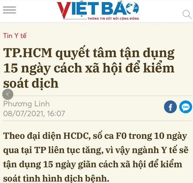 當局已宣布從7月9日零點起在胡志明市實施為期15天的社會隔離,在此期間,民眾如無正當理由外出,將被課以300萬越南盾罰款。